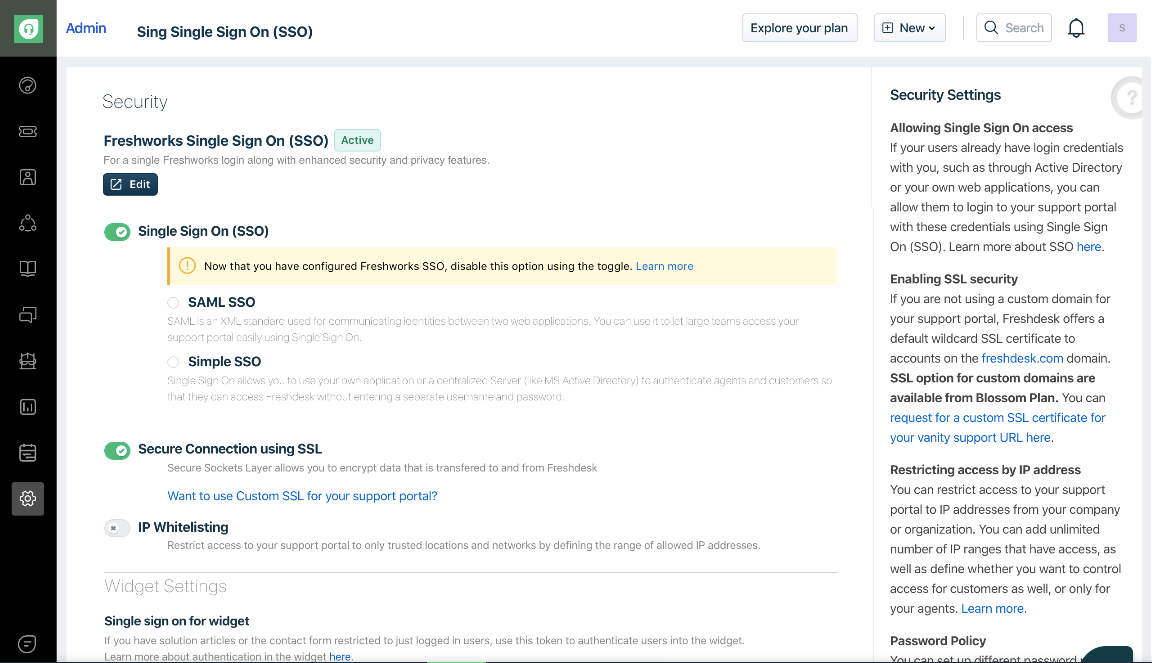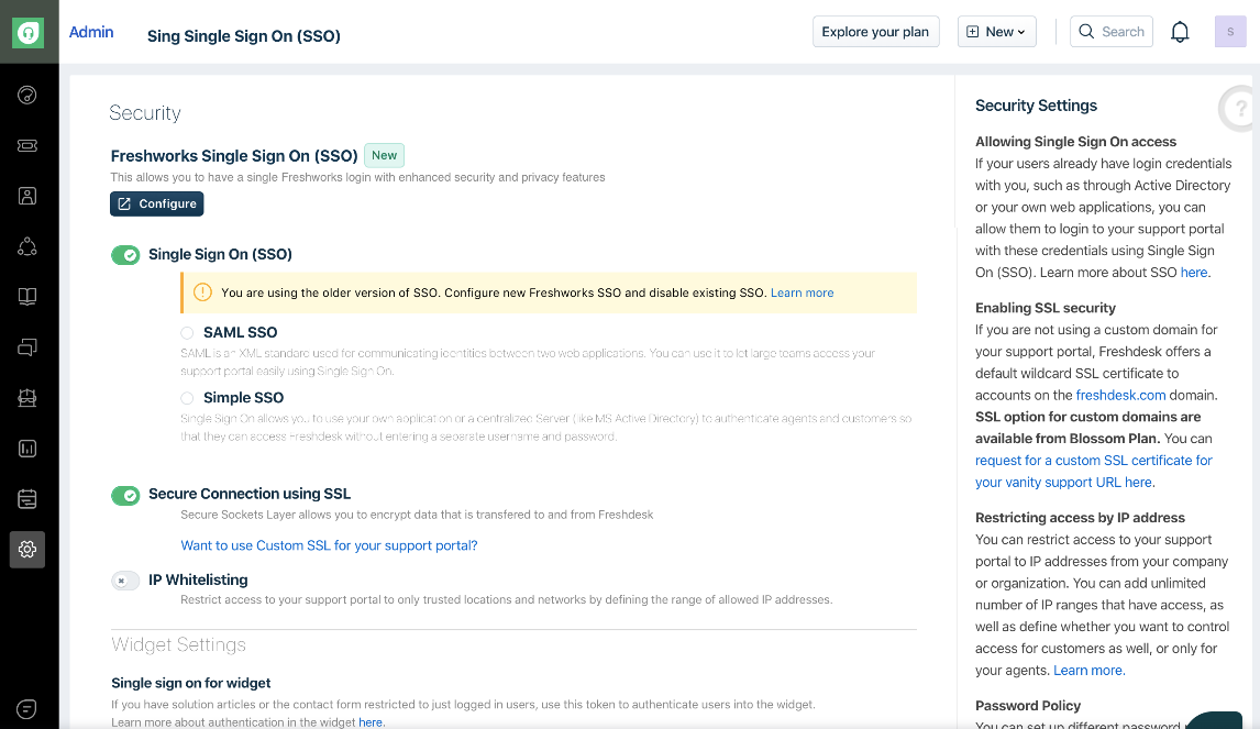New Single Sign-On set up in Freshdesk