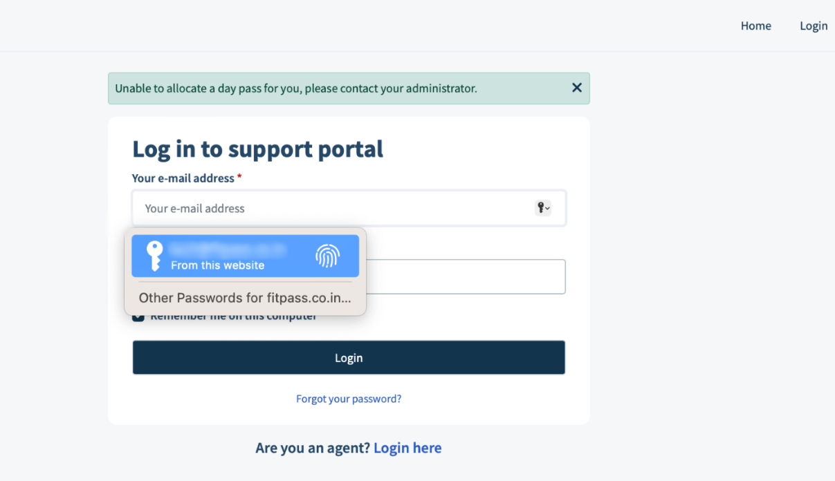 If you have been added as an Occasional Agent in your account, and if your account does not have sufficient day passes to log in, you will encounter this error.
